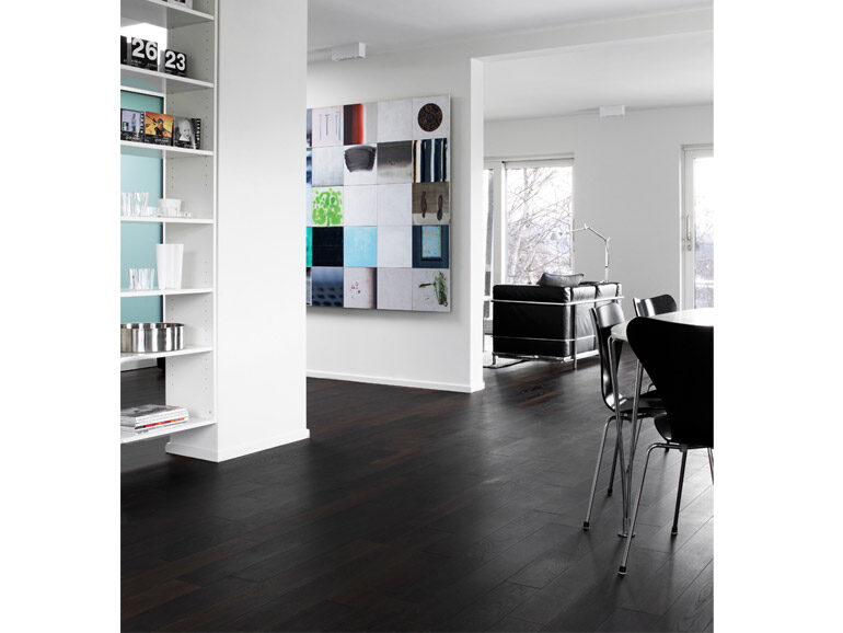 Die Eiche kerngeräuchert unterstreicht Architektur und Mobiliar und zaubert eine besondere Stimmung in den Raum, die berührt und mit Leidenschaft erfüllt. Mit dem Gesund-Parkett bringt man die Natur direkt in seine vier Wände.